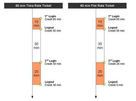 Bu erişim yönteminde müşteriler internete admin tarafından belirlenen kısıtlı bir zaman süresince ve download limit dahilinde ulaşabilirler. Tahsis edilen zaman süresi veya download hızına erişildiğinde erişim otomatik olarak kesilir ve müşterinin tekrar ticket alması gerekir.